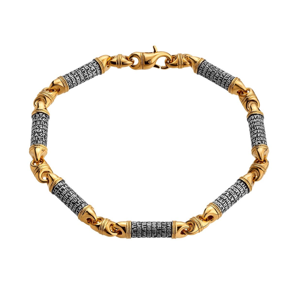 Массивный браслет с одной из самых сильных защитных молитв Псалом 90. Первые слова псалма "Живый в помощи..." известны всем. Браслет подойдет как мужчинам , так и женщинам, предпочитающим заметные статусные аксессуары со смыслом.