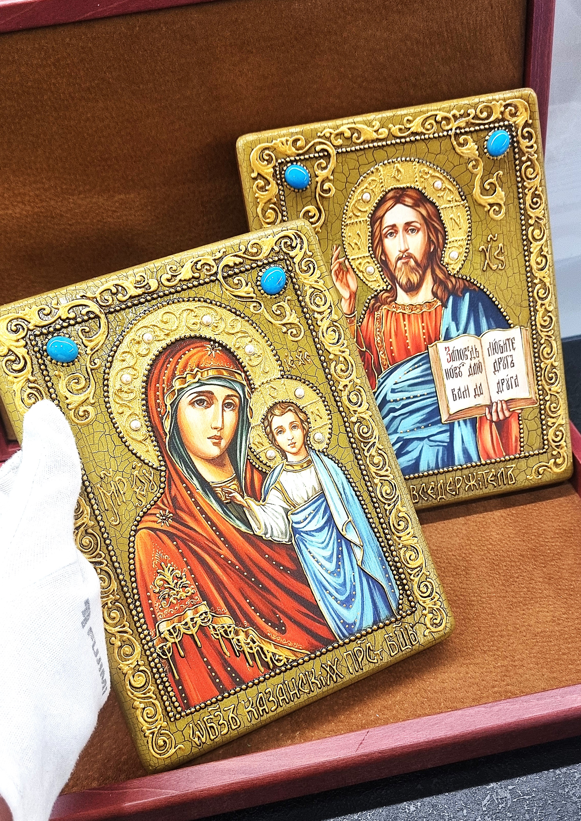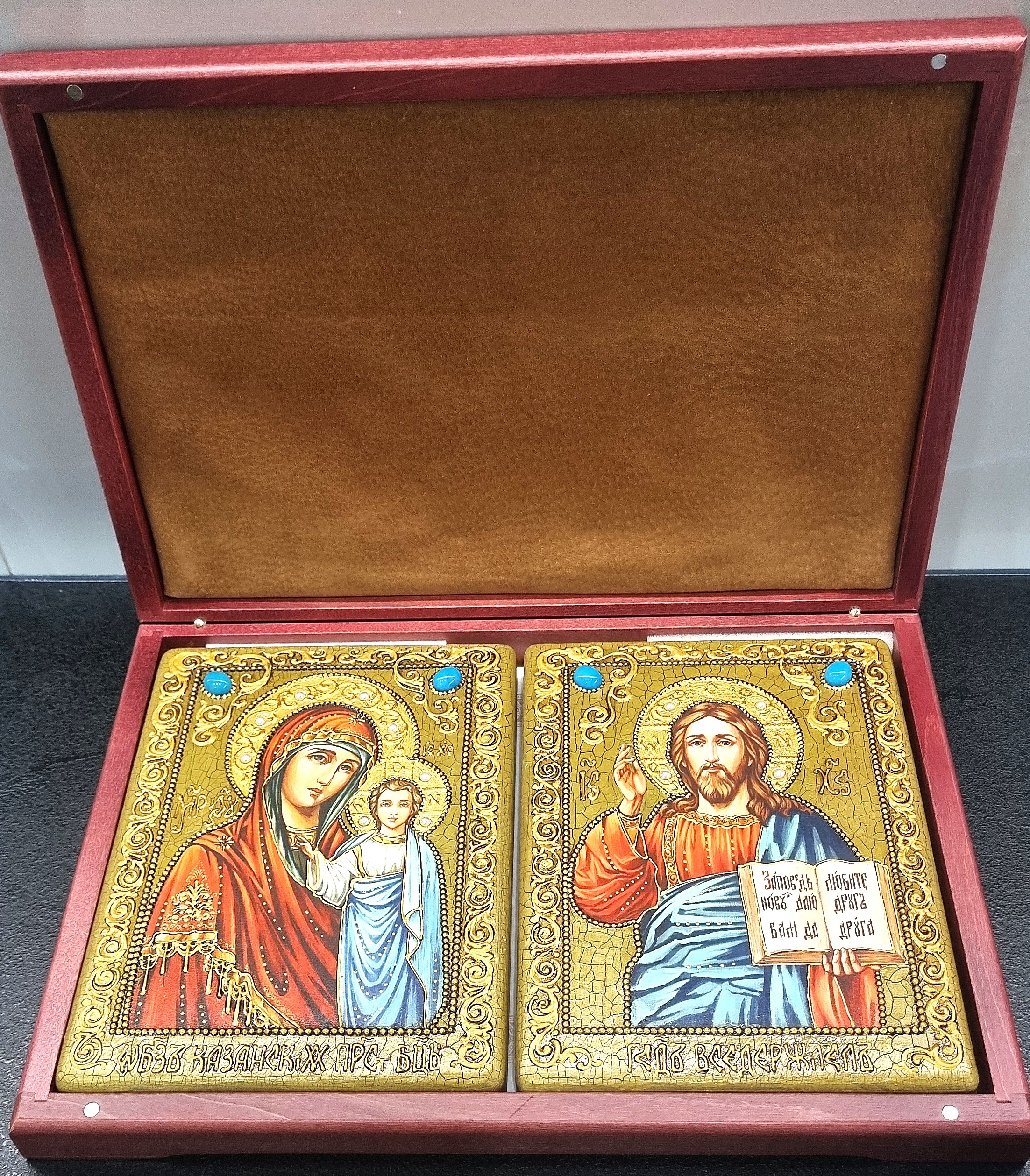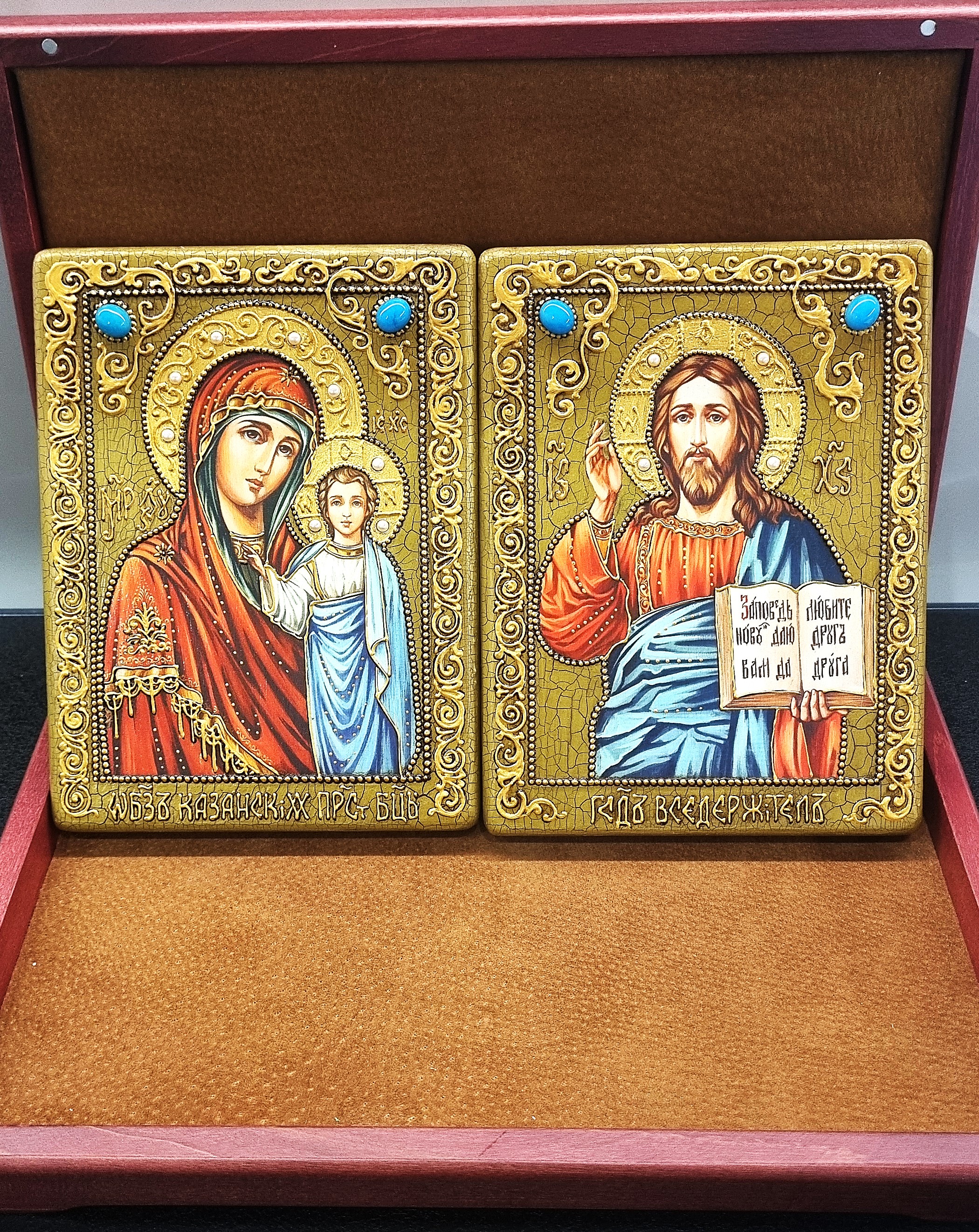 Образы поставляются в изящной подарочной шкатулке, подчеркивающей статус и значимость дара. Такие иконы станут семейной реликвией, передающей чувство небесного покровительства и невидимой поддержки через поколения.