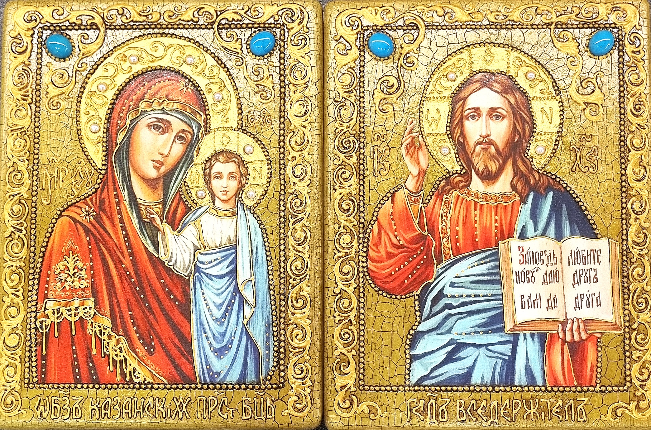 Венчальная пара икон (образы Христа (чаще всего образ «Господь Вседержитель») и Богородицы) символизирует собой духовный союз мужа и жены. Традиционно родители благословляют этими святынями жениха и невесту, передавая им мудрость и защиту предков.