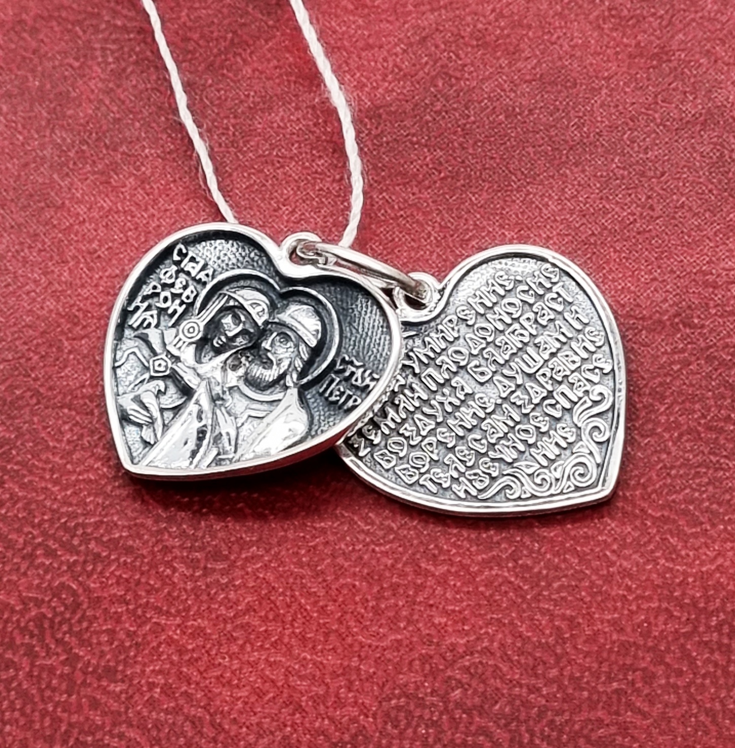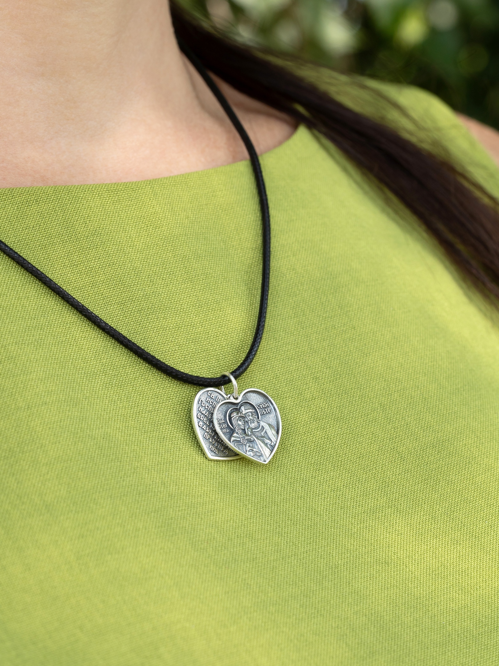 Подвеска создана в форме сердца не случайно. Сердце - центр жизни, физической и духовной. Именно в самом центре должна быть семья. Посмотрев на подвеску мы всегда будем помнить ее предназначение и ту цель, которой хотим достичь. Молитва и лики скрыты от глаз окружающих как человек не должен делать из семьи что-то публичное и доступное всем. Святые изображены как можно ближе друг к другу, дабы показать, что Они единое целое, неразрушимое.