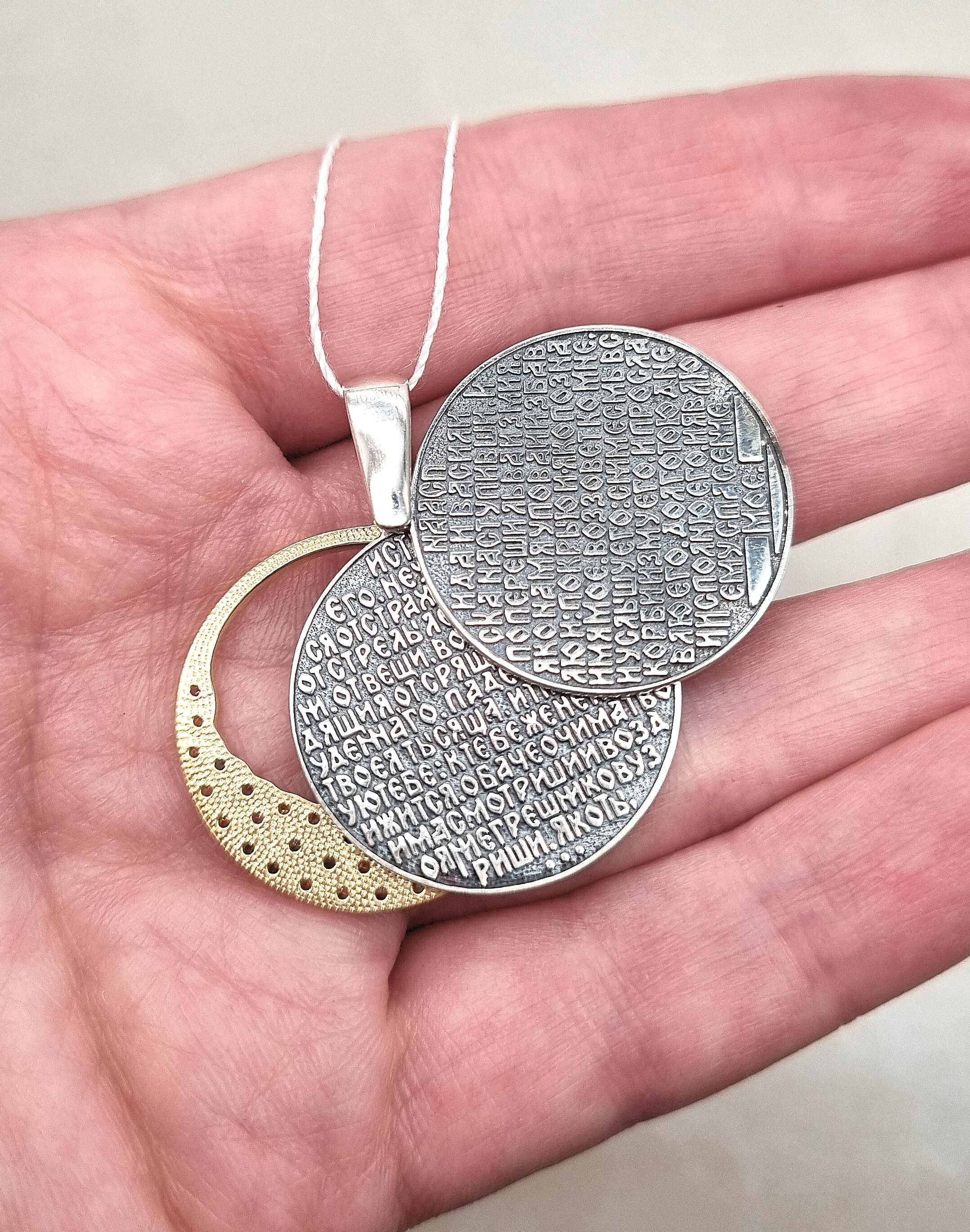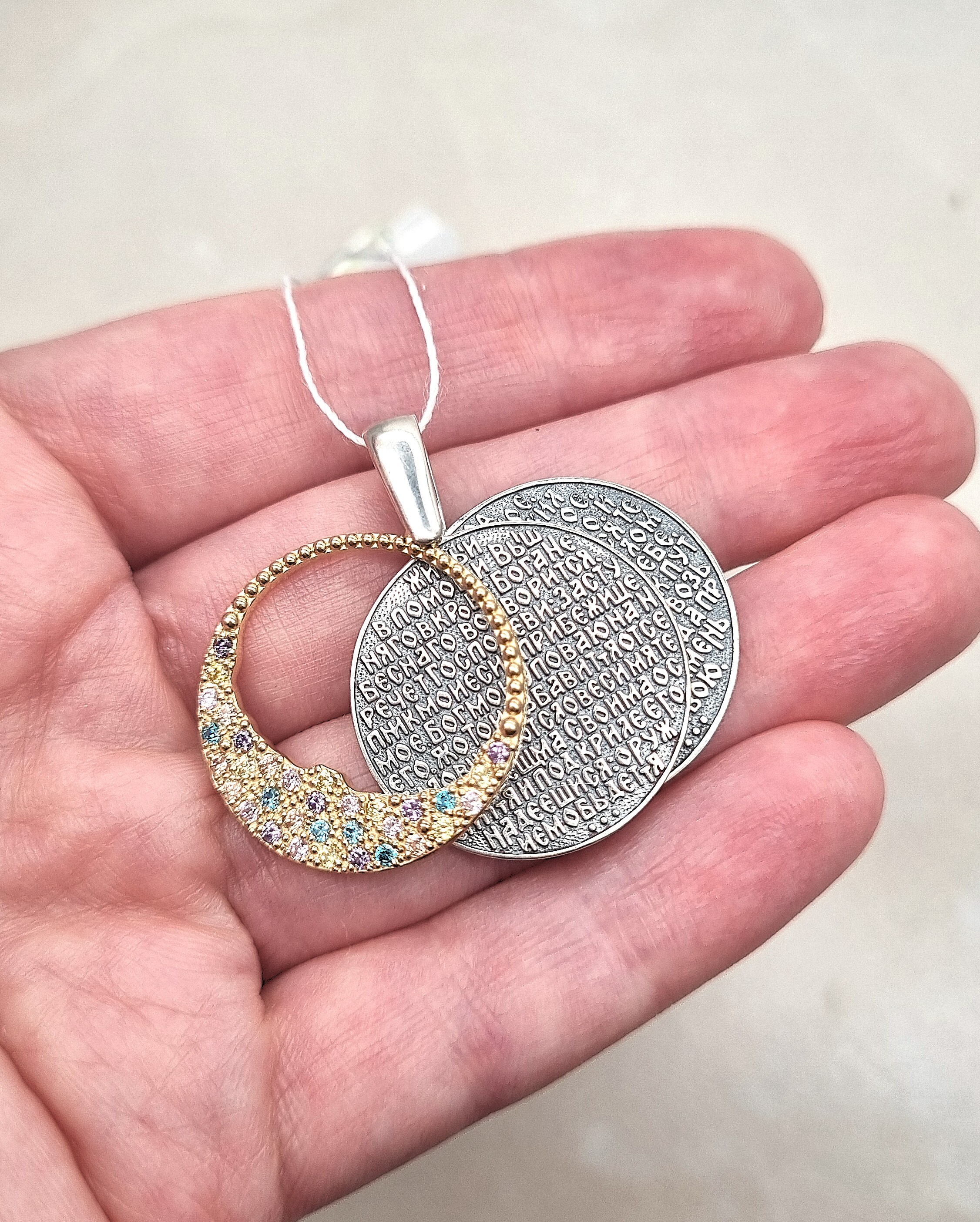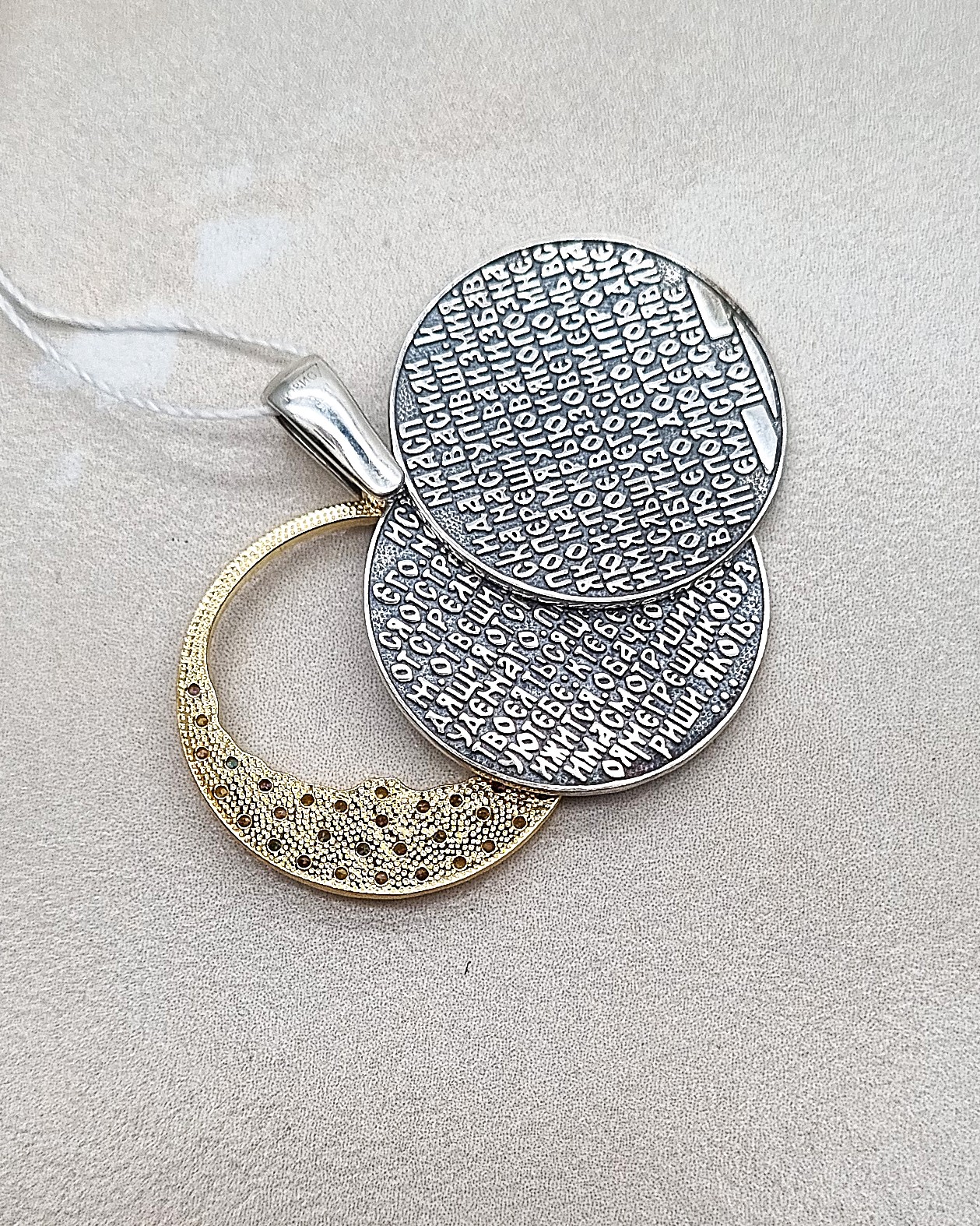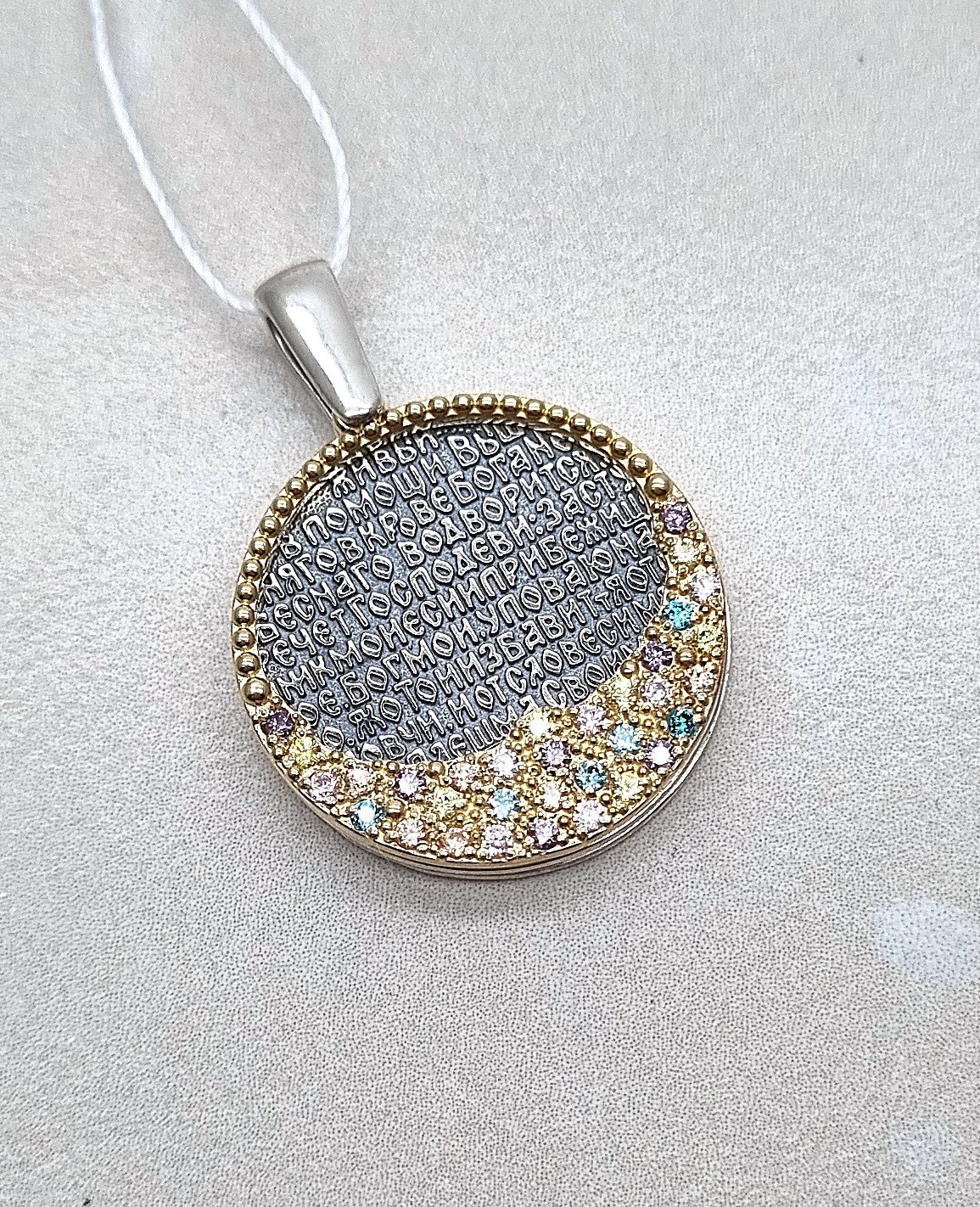 Серебряная трехсоставная подвеска «Сила и надежда» с молитвой 90 псалма "Живый в помощи" разноцветными фианитами. Внутренний размер уха 6 * 3 мм. Освящено.