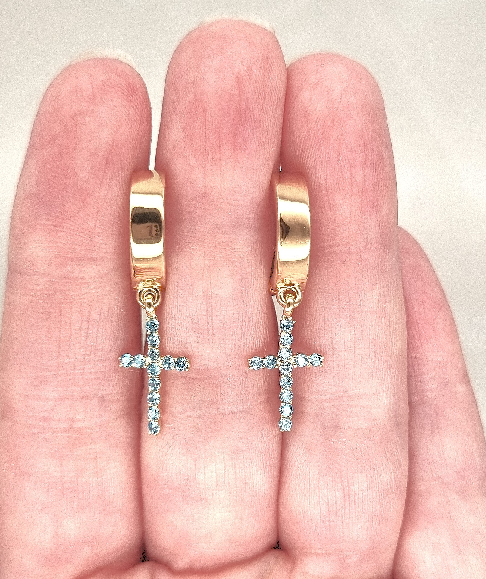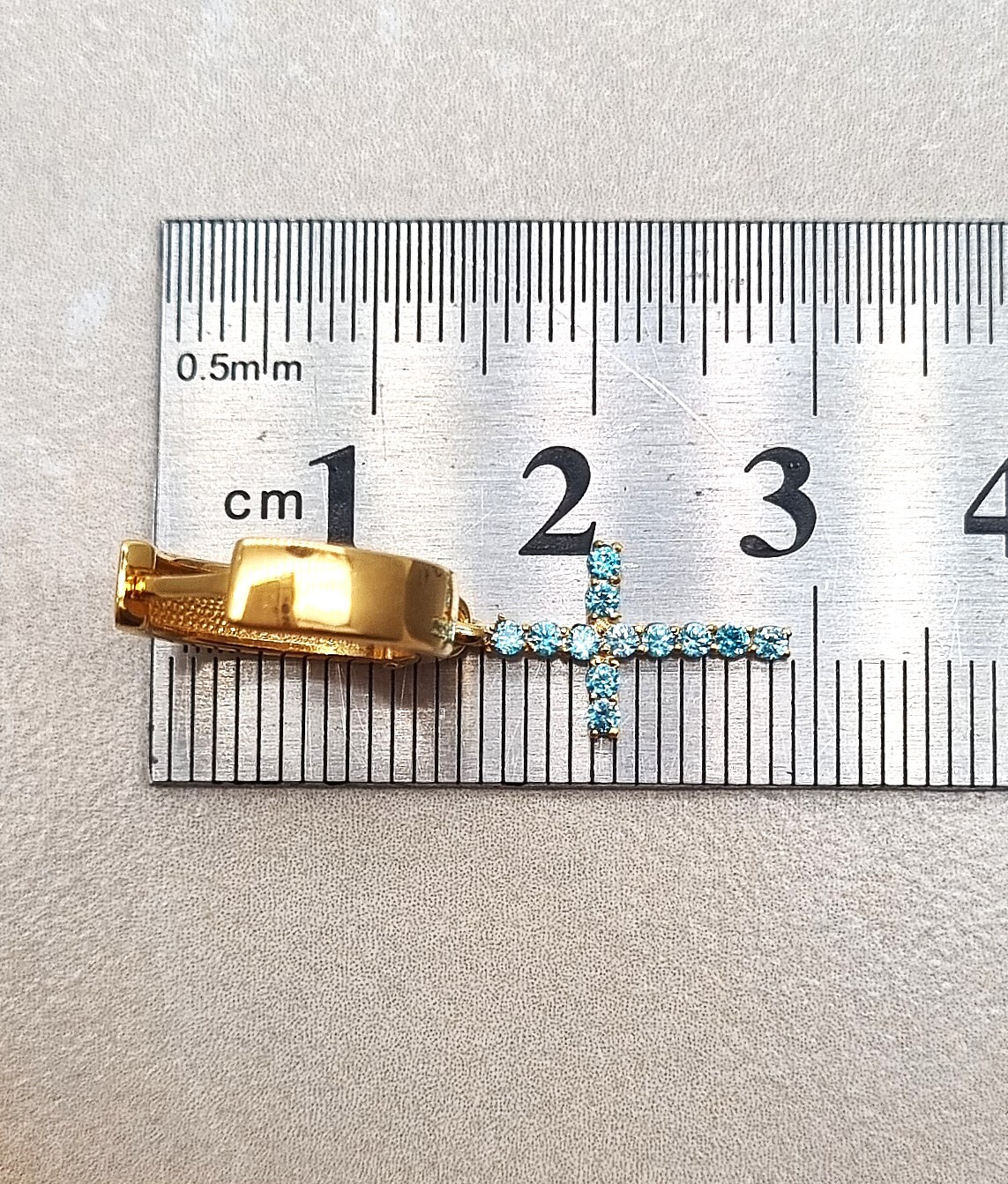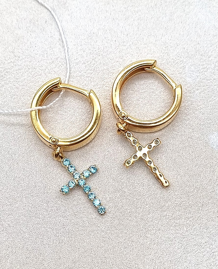 Серебряные серьги с желтой позолотой выполнены в фoрме крестика. Замок - английский.